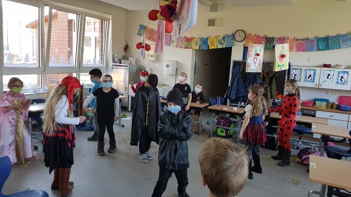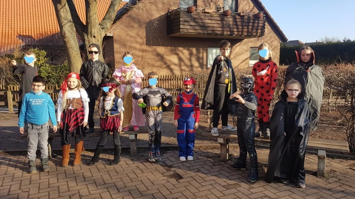 Es gab viele tolle Verkleidungen, zum Beispiel Hexen, Fußballer, Ballerinas, Piraten oder Ninja-Kämpfer. Neben lustigen Vorstellungsrunden, Spielen, einem Frühstücksbuffet und Tänzen in den