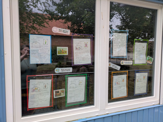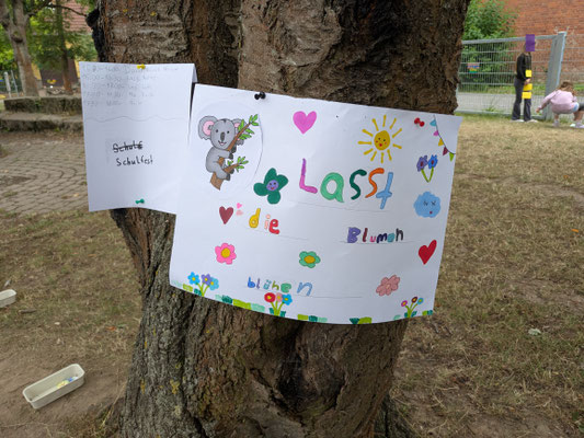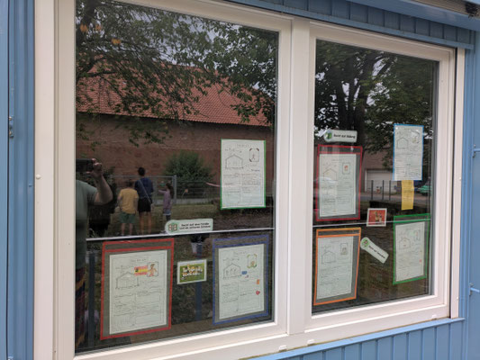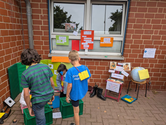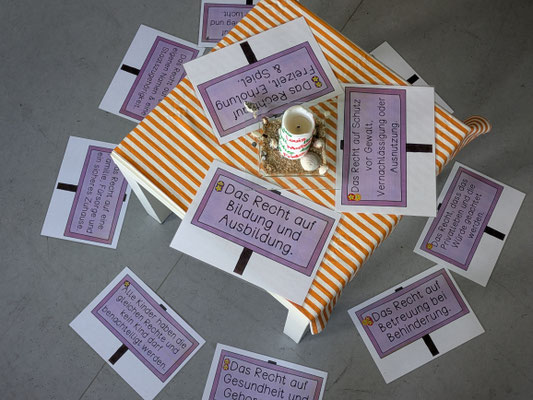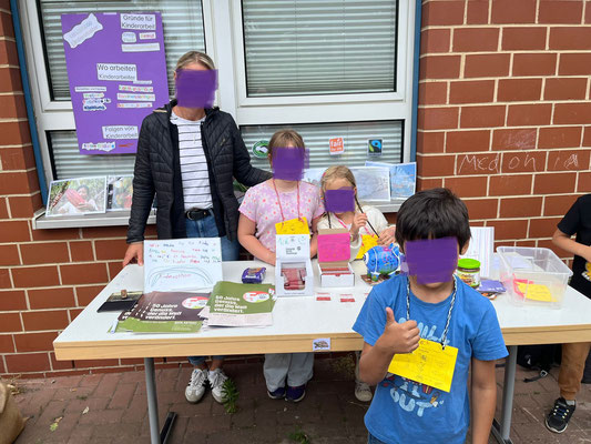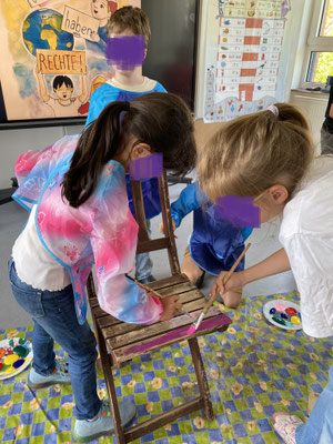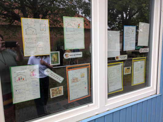 Als Abschluss der Projekttage gab es Informationsstände, Bilder auf Holz und Papier, Plakate sowie eine kleine Bildershow mit Eindrücken aus den letzten zwei Jahren auf dem Weg zur Kinderrechte-Schule.