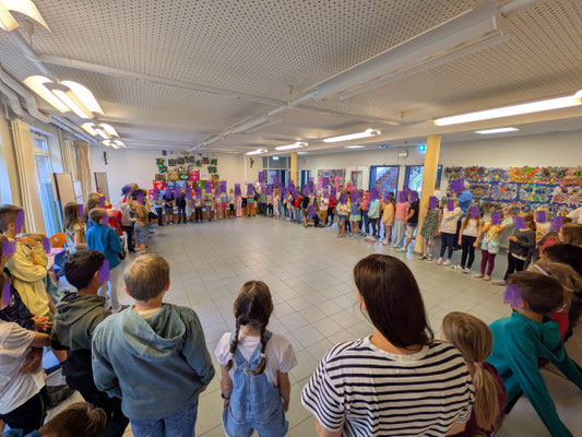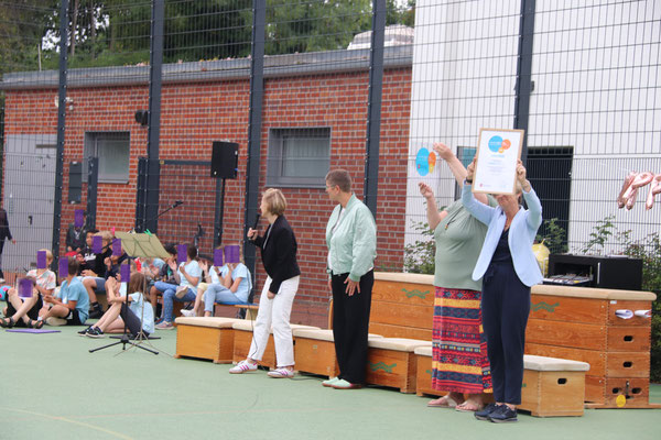 Außerdem fand nach den Projekttagen zum Thema "Kinderrechte in der Welt" die offizielle Zertifizierung unserer Schule zur Kinderrechte-Schule statt! Wir sind sehr glücklich und zufrieden mit dieser Auszeichnung und werden unsere Schülerinnen und Schüler im Sinne einer nachhaltigen Demokratiebildung weiter begleiten.