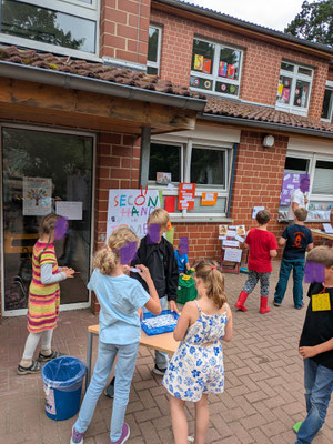 Bei der Second-Hand-Tombola wurden durch den Losverkauf 185,00 € eingenommen. Diese Summe wurde auf Wunsch der Klasse 4 an Unicef gespendet, und zwar für das Projekt "Nothilfe in Syrien".