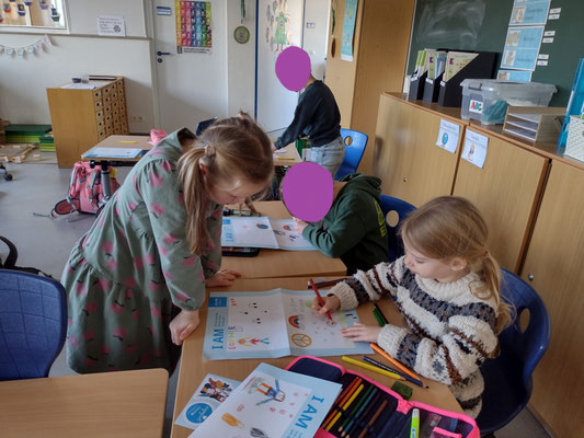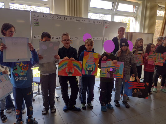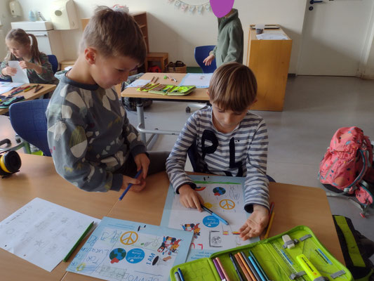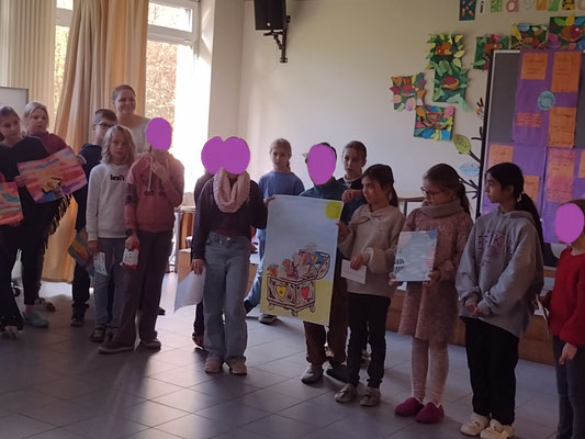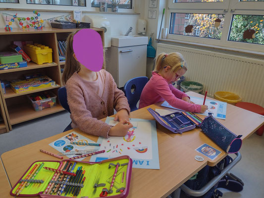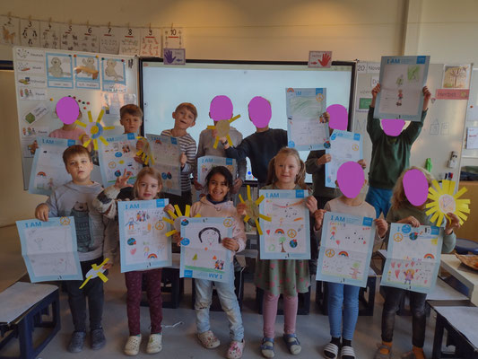 Zu Beginn kamen alle Klassen in der Aula zusammen, wo wir nach den ersten einführenden Worten unserer Schulleiterin Frau Kopp gemeinsam das Lied „Ich bin anders“ sangen, ein Lied, das die Vielfalt jedes Einzelnen in den Vordergrund stellt. Anschließend starteten die Klassen mit verschiedenen Aktivitäten rund um das Motto „I AM. Ich bin einmalig. Ich bin vieles. Ich bin gut“. In Gesprächen, kleinen Übungen und kreativen Aufgaben setzten sich die Kinder damit auseinander, was sie besonders macht und welche Stärken sie in sich tragen. Mit Postern, Aufklebern und jeder Menge eigener kreativer Gestaltungsideen machten die Kinder von Klasse 1 bis 4 die Message des Tagesmottos für alle sichtbar.